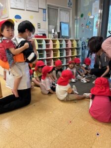 子ども達は保育士のお話を良く聞きながら、安全に待機出来ました。
