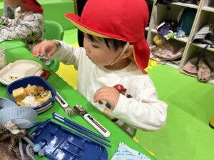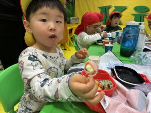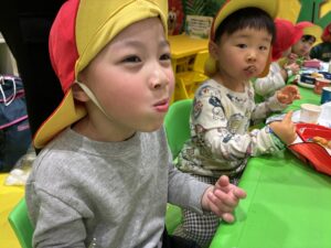 お口いっぱいに頬張りご満悦の表情を浮かべる子ども達。
